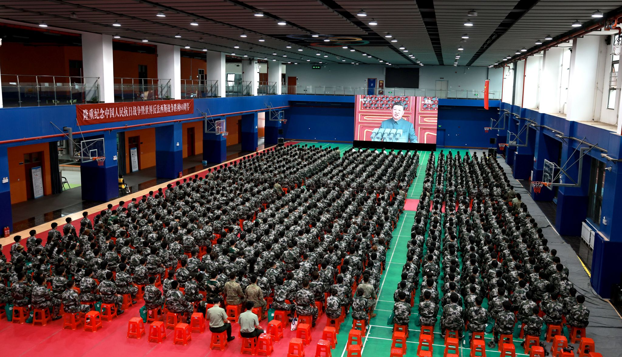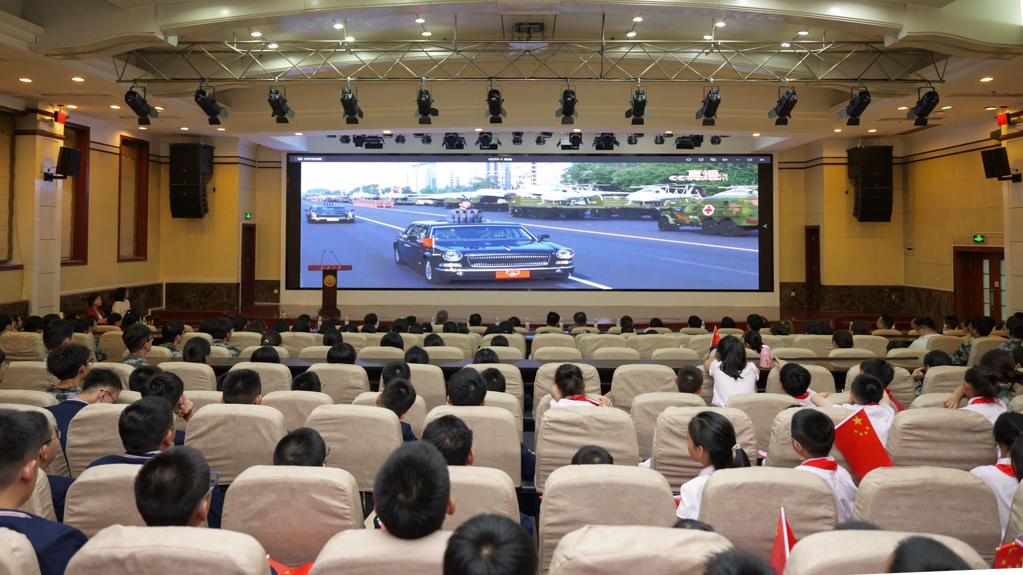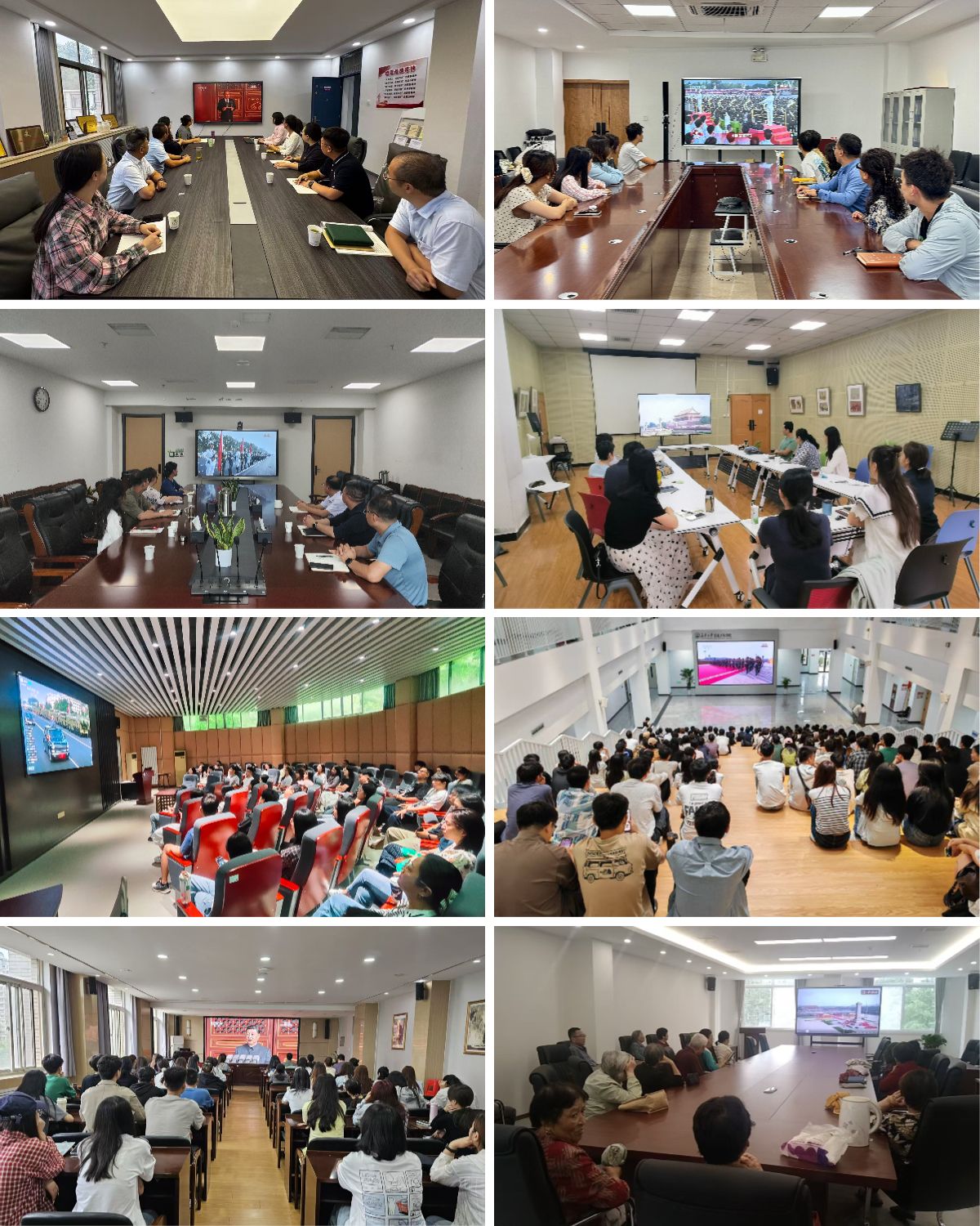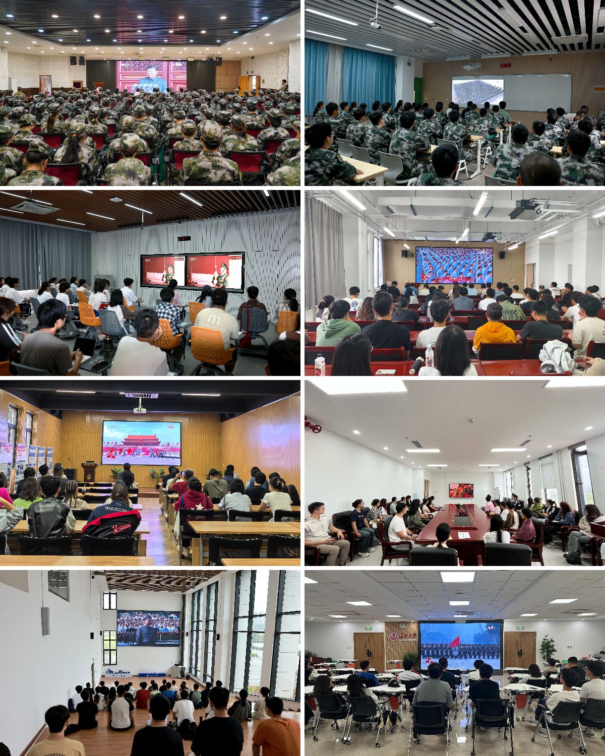学校组织全体学生分70余个会场集中观看纪念大会;各分党委、党总支,校属各单位组织教职员工集中观看。同时,学校开放学生社区、食堂等场地鼓励学生前往观看直播。全体校领导深入军训旅,同新生一同集中观看。习近平总书记的重要讲话和天安门阅兵现场的盛况,在全体师生中引发热烈反响。
